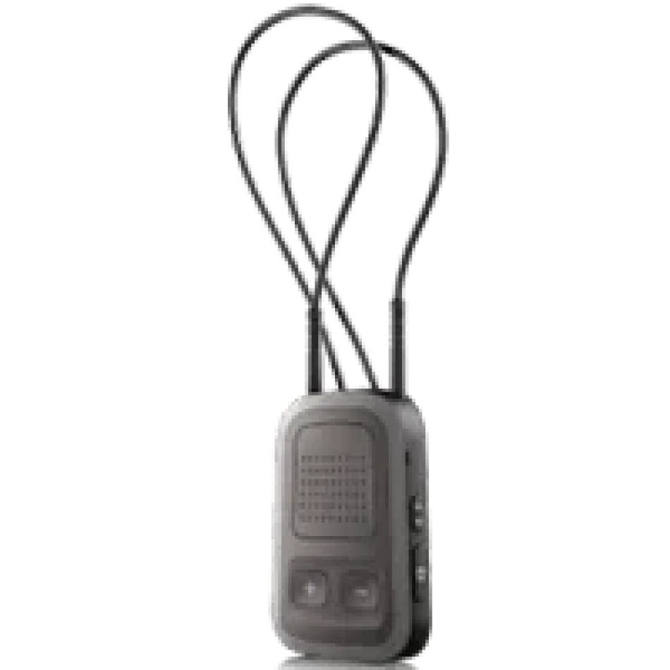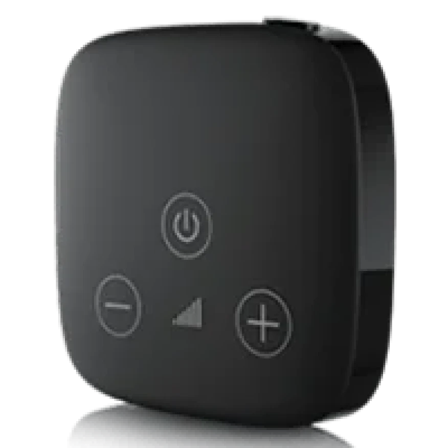 Conecta-se diretamente aos aparelhos auditivos para transmissão em som estéreo de telefones celulares, TVs, receptores Roger, e MP3 players, também com função de controle remoto.